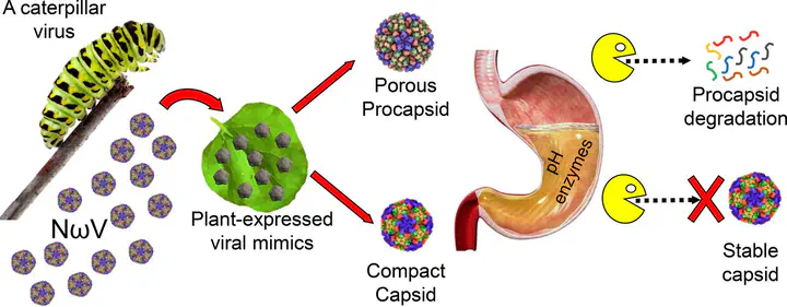 The harsh conditions of the gastro-intestinal (GI) milieu pose a major barrier to the oral delivery of protein nanocages. Here we studied the stability of Nudaurelia capensis omega virus (NωV) virus-like particles (VLPs) in simulated GI fluids. NωV VLPs capsids and procapsids were transiently expressed in plants, the VLPs were incubated in various simulated GI fluids and their stability was determined by gel electrophoresis, density gradient ultracentrifugation and transmission electron microscopy (TEM). The results showed that the capsids were highly resistant to simulated gastric fluids at pH≥3. Even under the harshest conditions, which consisted of a pepsin solution at pH 1.2, NωV capsids remained assembled as VLPs, though some digestion of the coat protein occurred. Moreover, 80.8% (±10.2%) stability was measured for NωV capsids upon 4h incubation in simulated intestinal fluids. The high resistance of this protein cage to digestion and denaturation can be attributed to its distinctively compact structure. The more porous form of the VLPs, the procapsid, was less stable under all conditions. Our results suggest that NωV VLPs capsids are likely to endure transit through the GI tract, designating them as promising candidate protein nanocages for oral drug delivery.